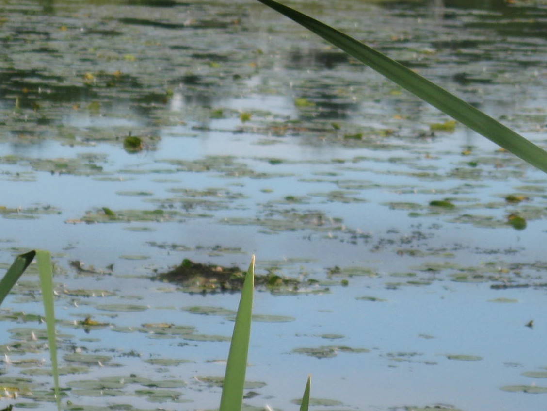 And of course there was that pied-billed grebe who laid three eggs in August (see the photo)-- and sat on it for weeks, until finally it abandoned the nest when she figured out the eggs weren't viable, and the next day, the eggs [three of them, but I'm afraid you probably can't make them out in the small version of the photo to the right) were gone. And so on.