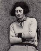 It seems to me that Weil's early and persistent identification with "the slave" lies at the heart of her life, her thought-- and my long-time difficulty of opening my mind to her ideas. This identification started, not surprisingly, in early childhood, since children often hold the notion of sacrificing oneself as a proof or achievement of goodness, sometimes on a grand scale. Weil was raised in an extremely affluent (secular) Jewish family in Paris in the first decades of the 20th century. (She was born in 1909.) She was raised like her brother Andre (yes, the famous gifted mathematician) as a boy, and they were very close. Yourgrau observes: "Signing her letters, 'your respectful son,' Simone became Simon-- a favourite nickname for her in the family-- a brother to her only brother, a second son. When, in the course of time, she wrote about the legendary Cathar civilization of Laguedoc, she adopted the pen name of a man, the anagrammatical 'Emile Novalis.'"(17) When, as a child during World War I, Simone learned that soldiers at the front were "being denied their ration of sweets," she gave up chocolate. As an adult, she developed the habit of sleeping on the floor (as a practice of humility). As early as the age of three, she refused a gift on the grounds that it was "luxurious." Here's Yourgrau: