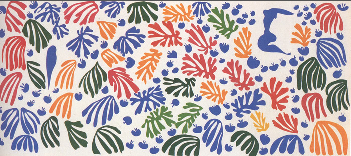 On the plane, I saw a video titled Matisse: Cut Outs. It covered the exhibition that started at the Tate Modern in London and is now at MoMA, profiling Matisse’s later works—huge collages created from paper he painted one solid color, then cut with scissors, and—with the help of his studio assistants—assembled on the walls of his studio. He did this work from his wheelchair and his bed while he was elderly, ailing, and often in pain. Despite his advanced age and failing health, the paper cutouts were a great discovery for him—and through this new medium he expressed great joy and emotion. Matisse’s cutouts are a wonderful example of the inventiveness of the creativity and demonstrates the power of creativity to surpass limitations and uphold artistic expression.