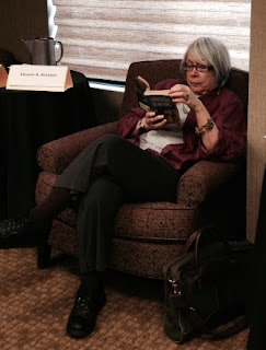 The programming was rich in readings, I'm happy to say, even if most of those I attended didn't attract large audiences, not least because there were often two readings going on at the same time, in addition to panels. Of the panel programming, I was most interested in attending the panels on feminist sf (which were well attended)-- one on "classical feminist sf," another titled "Badass, Babe, or None of the Above; Are Women's Archetypes Evolving (or Not) in SF/F Literature?" and "New Feminist SF." In two of these Marguerite Reed adopted the role of contrarian, which nudged the discussion into unexpected places. I also especially enjoyed the panel on Alternate History, with Chris Brown, Madeleine Rose Dimond, C.J. Mills, Katharine Eliska Kimrbiel, and Howard Waldrop.